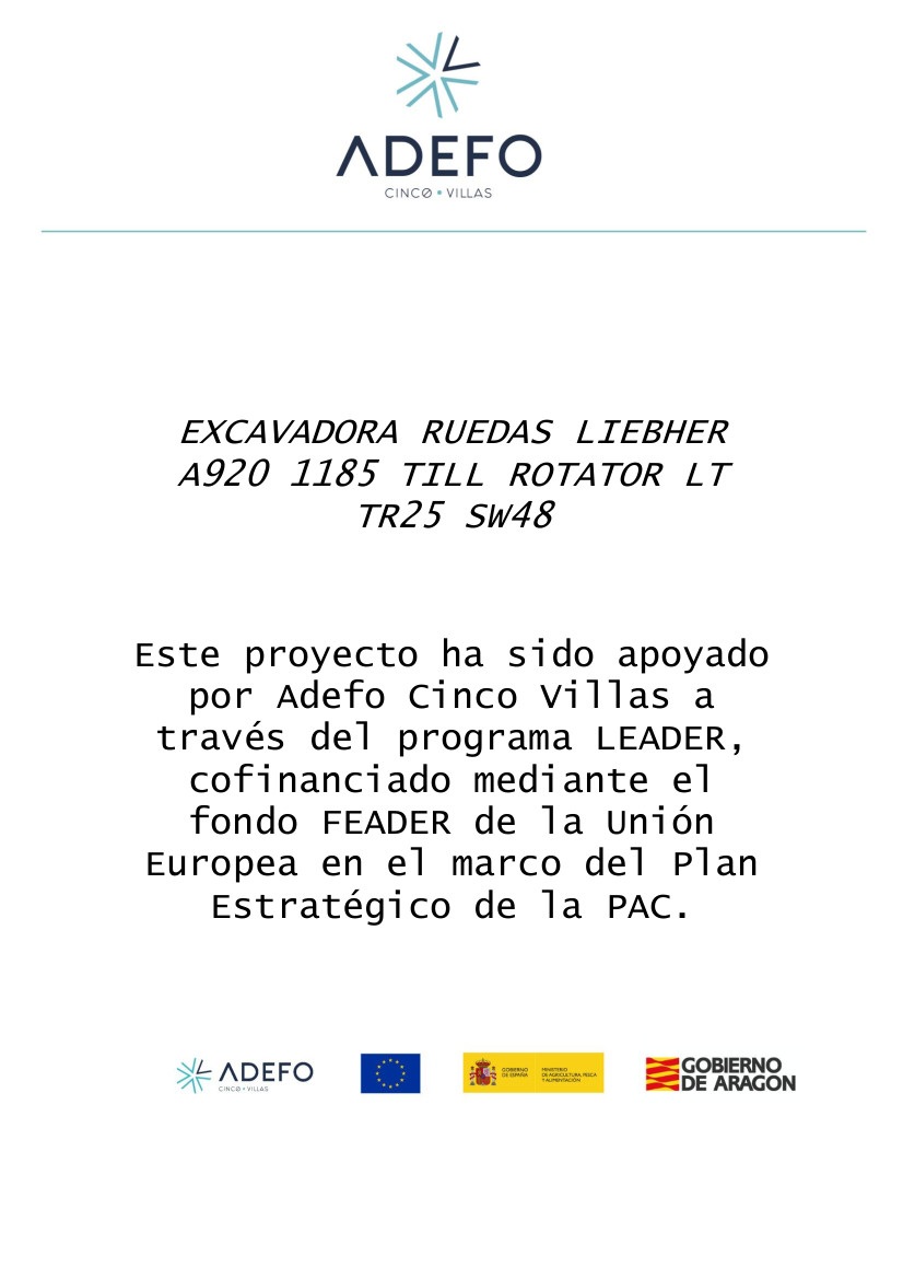 Se ha adquirido una retro excavadora de ruedas A920 de última generación con preinstalación de sistema 3D y provista de cazo 1400 mm, además del implemento TILL ROTATOR TR25 SW48.